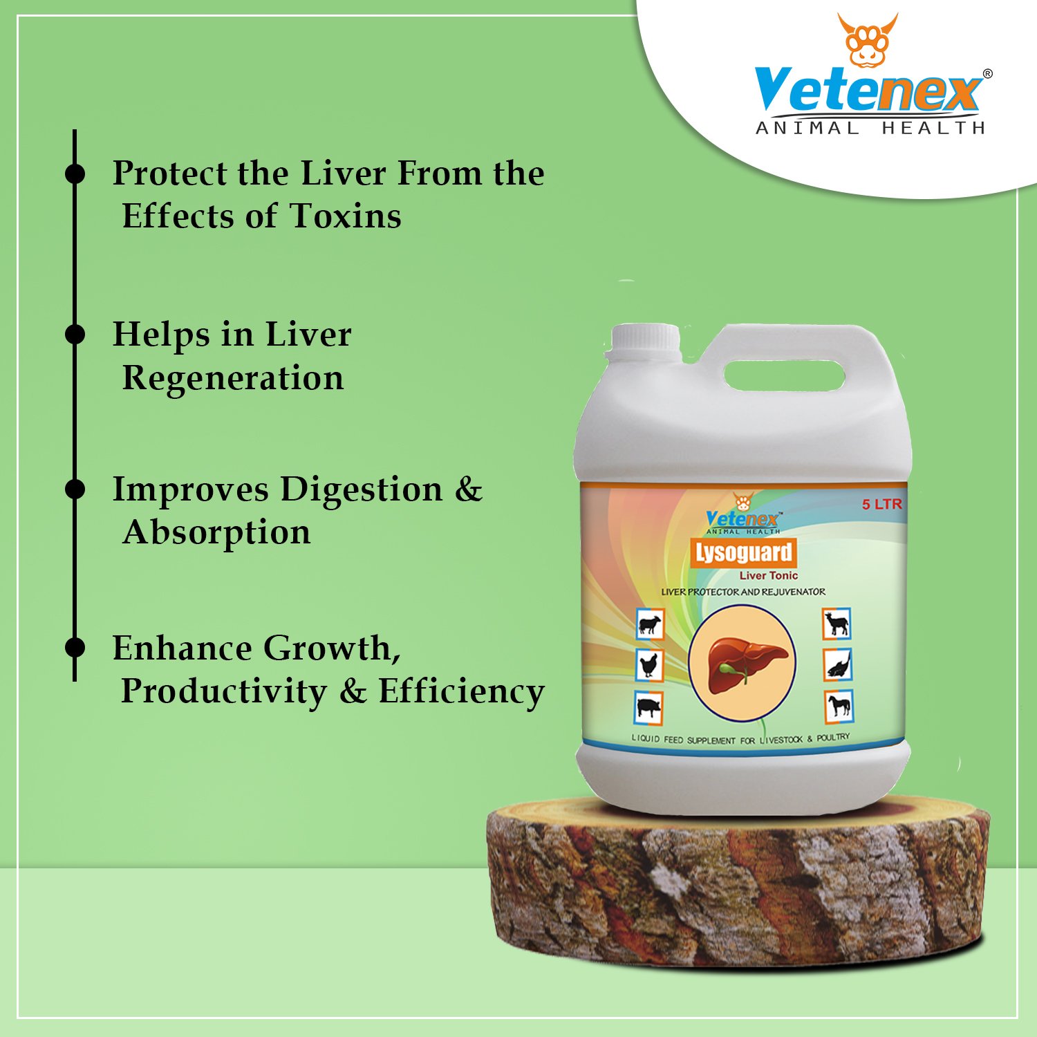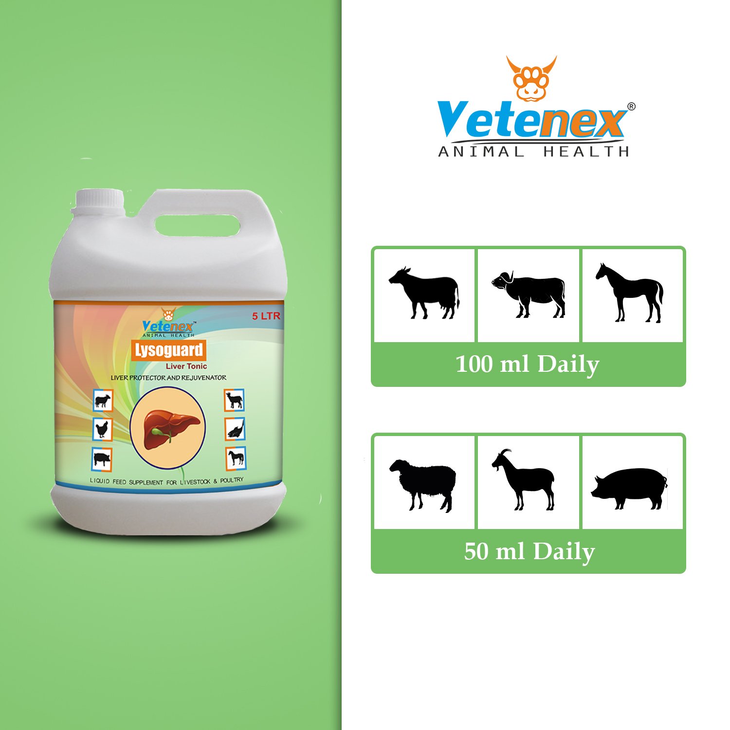 Lysoguard is a Liver & Digestive Tonic For Cattle, Cow, Buffalo, Goat, Sheep, Pigs, Poultry, Birds And Livestock Animals. Lysoguard Liver Supplement has combined the essential elements to create a healthy and flourishing environment for the liver. It facilitates the strengthening of the liver, cures any liver-related illnesses and improves the overall health of the liver.