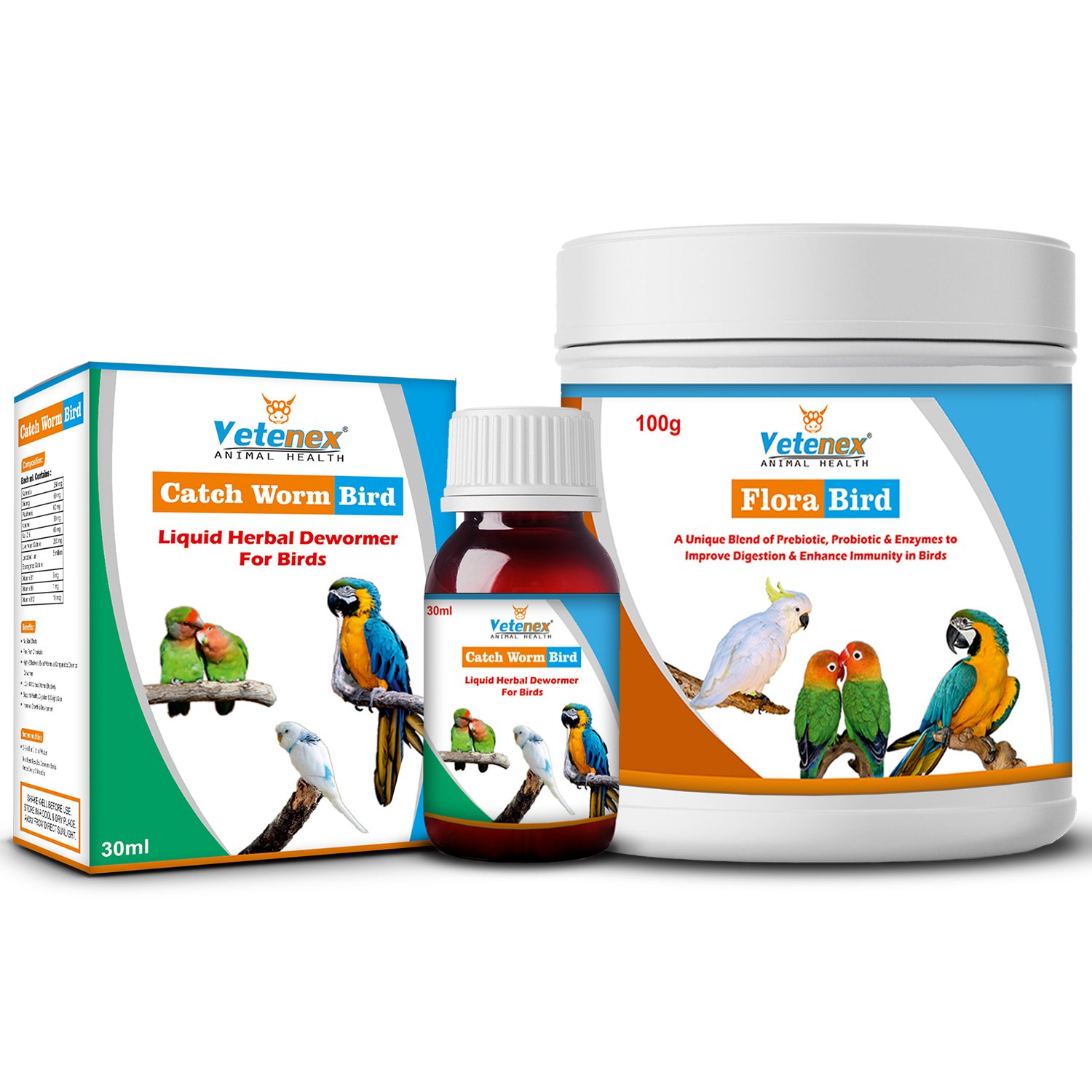Original price was: ₹698.00.₹448.00Current price is: ₹448.00.VETENEX Birds Liquid Herbal Dewormer + PREBIOTICS + PROBIOTICS + Enzymes Supplement For Birds (100 gm+30ml) Combo – Pack of 2