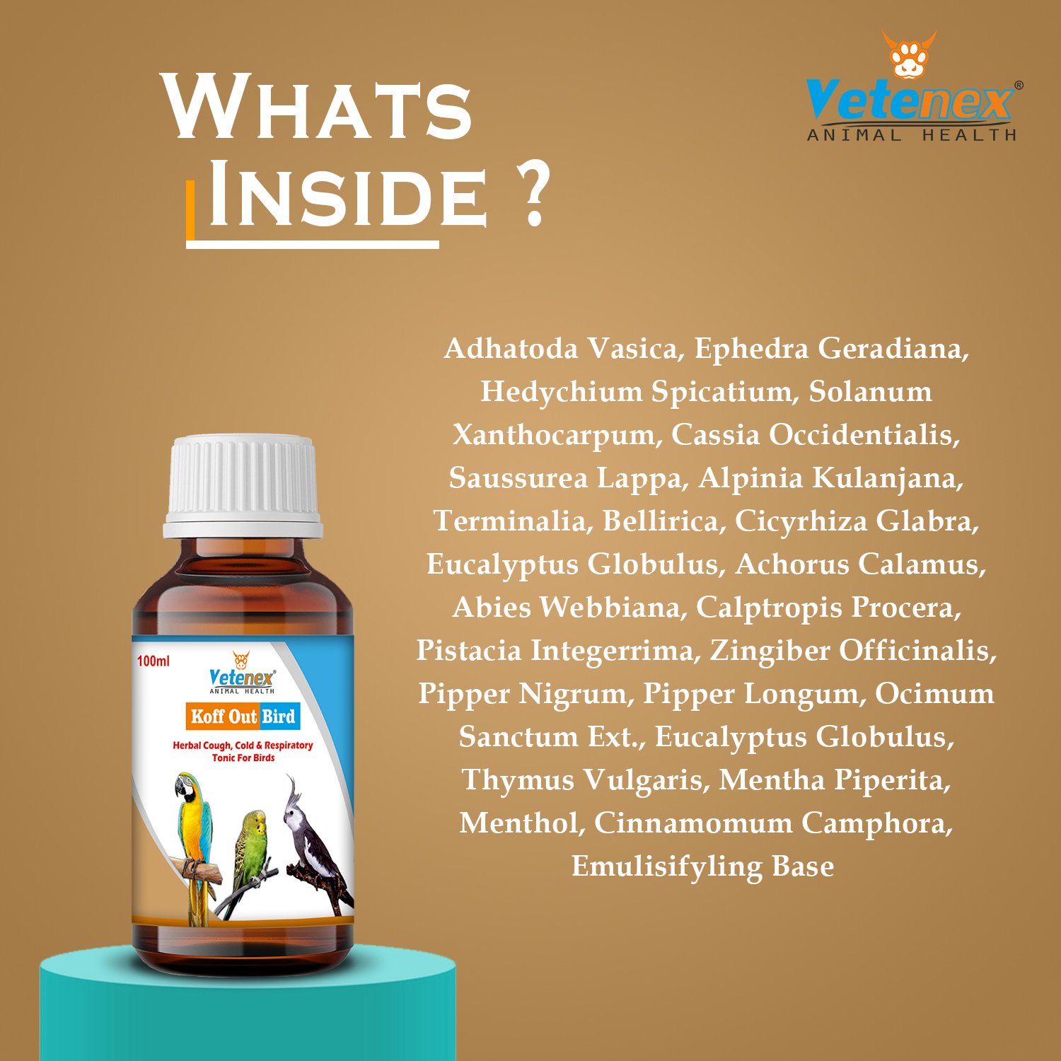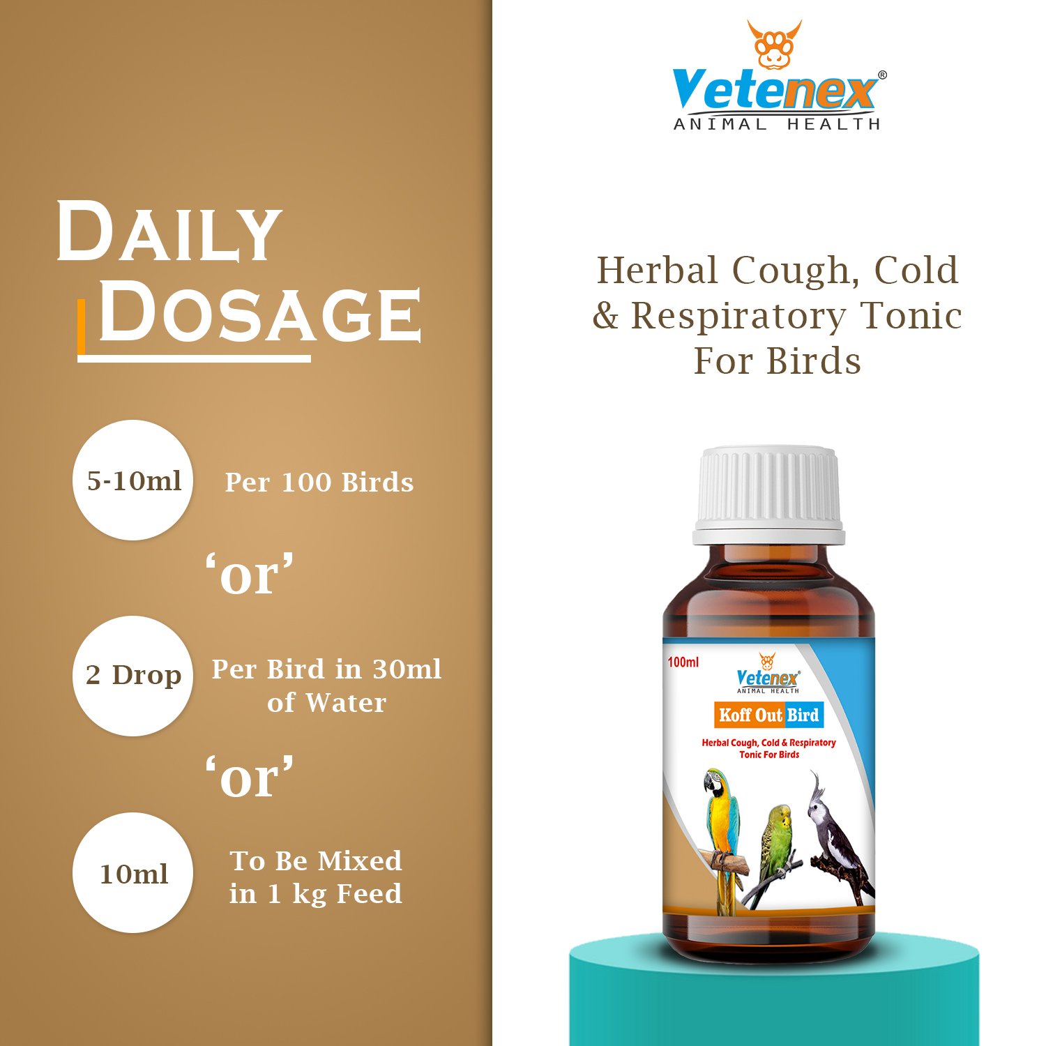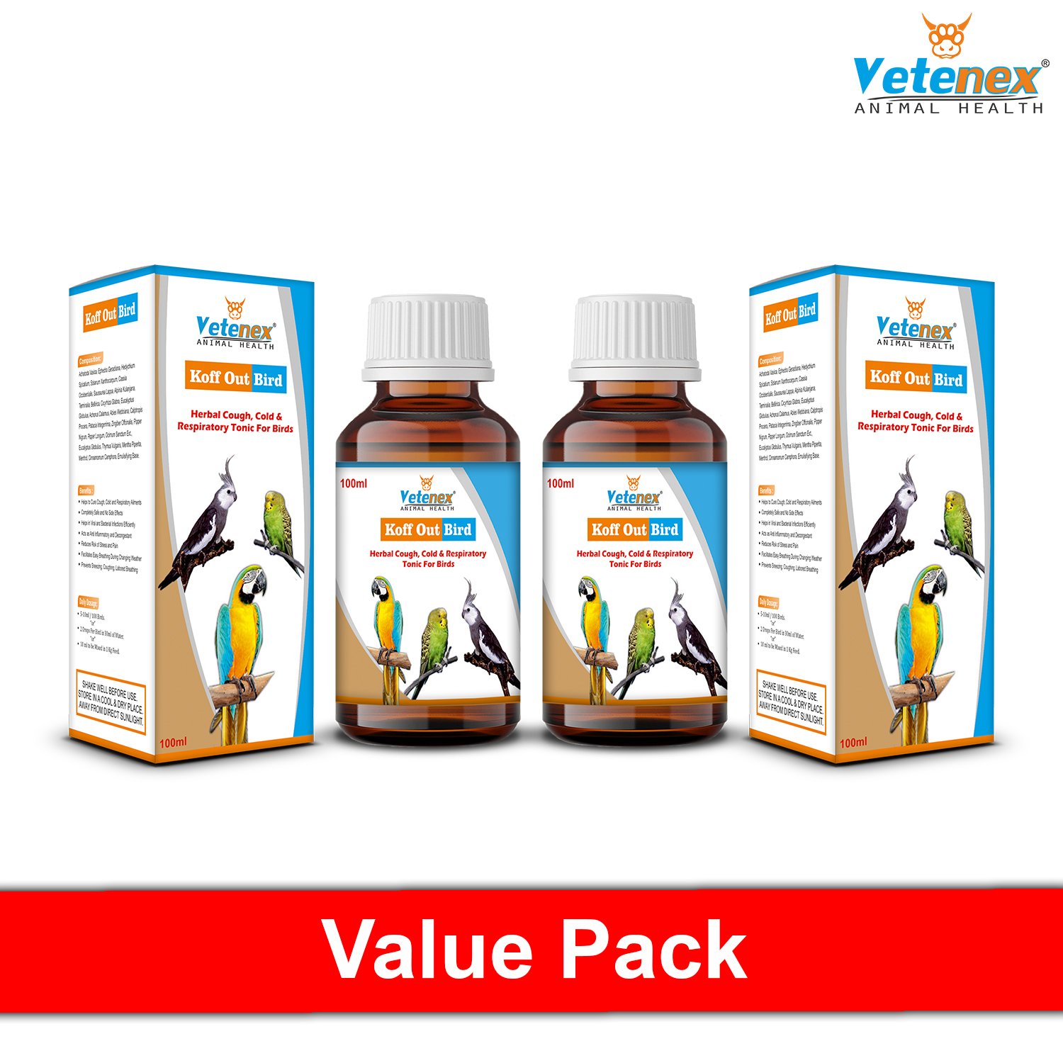 VETENEX Koff Out Bird – Respiratory Syrup, Cough, Cold Supplement For Birds (100 ml x 2) Combo – Pack of 2