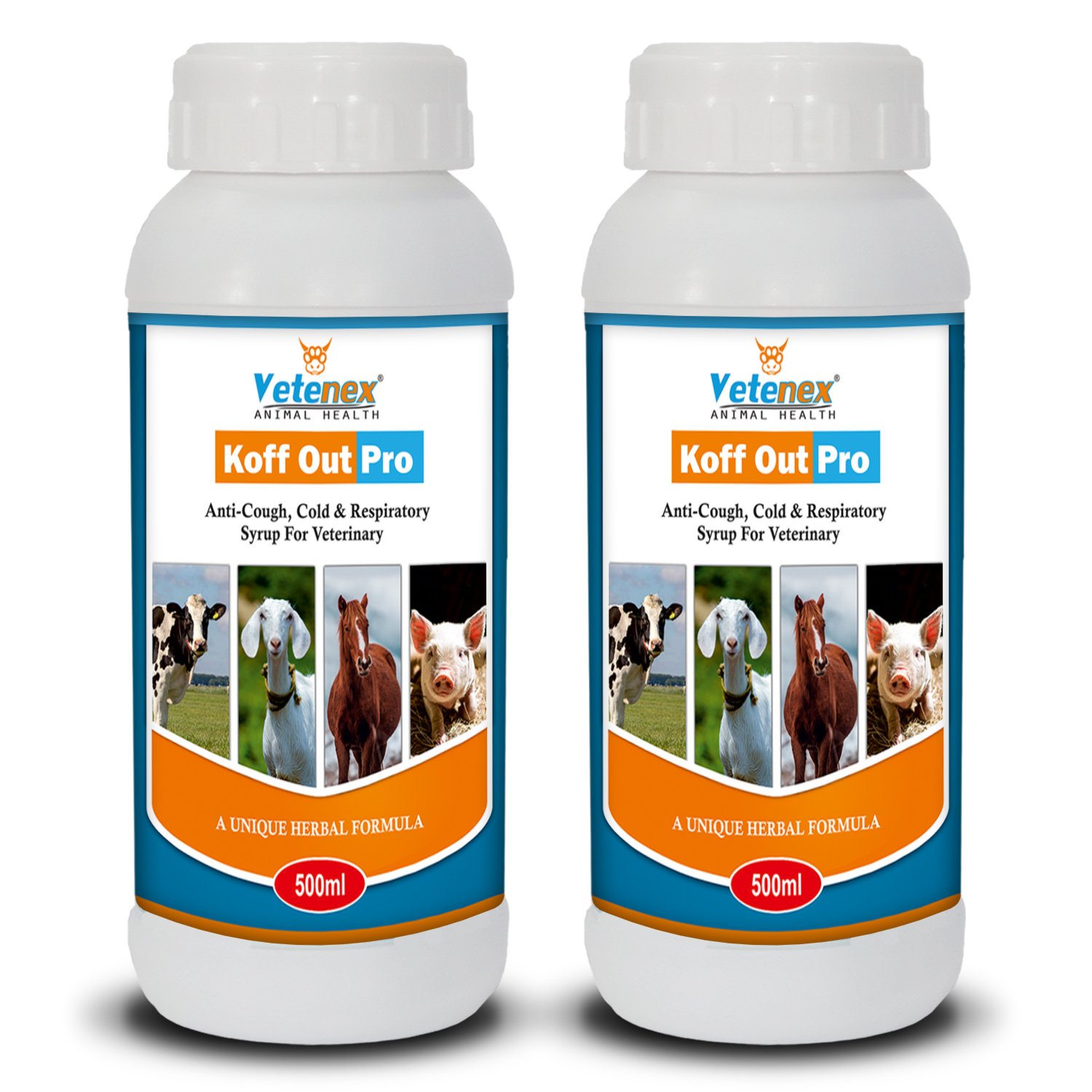 VETENEX Koff Out Pro – Anti-Cough, Cold & Respiratory Herbal Tonic for Cattle, Cow, Buffalo, Goat, Pig, Sheep & Livestock Animals -Combo Pack of 2 (500MLX2)