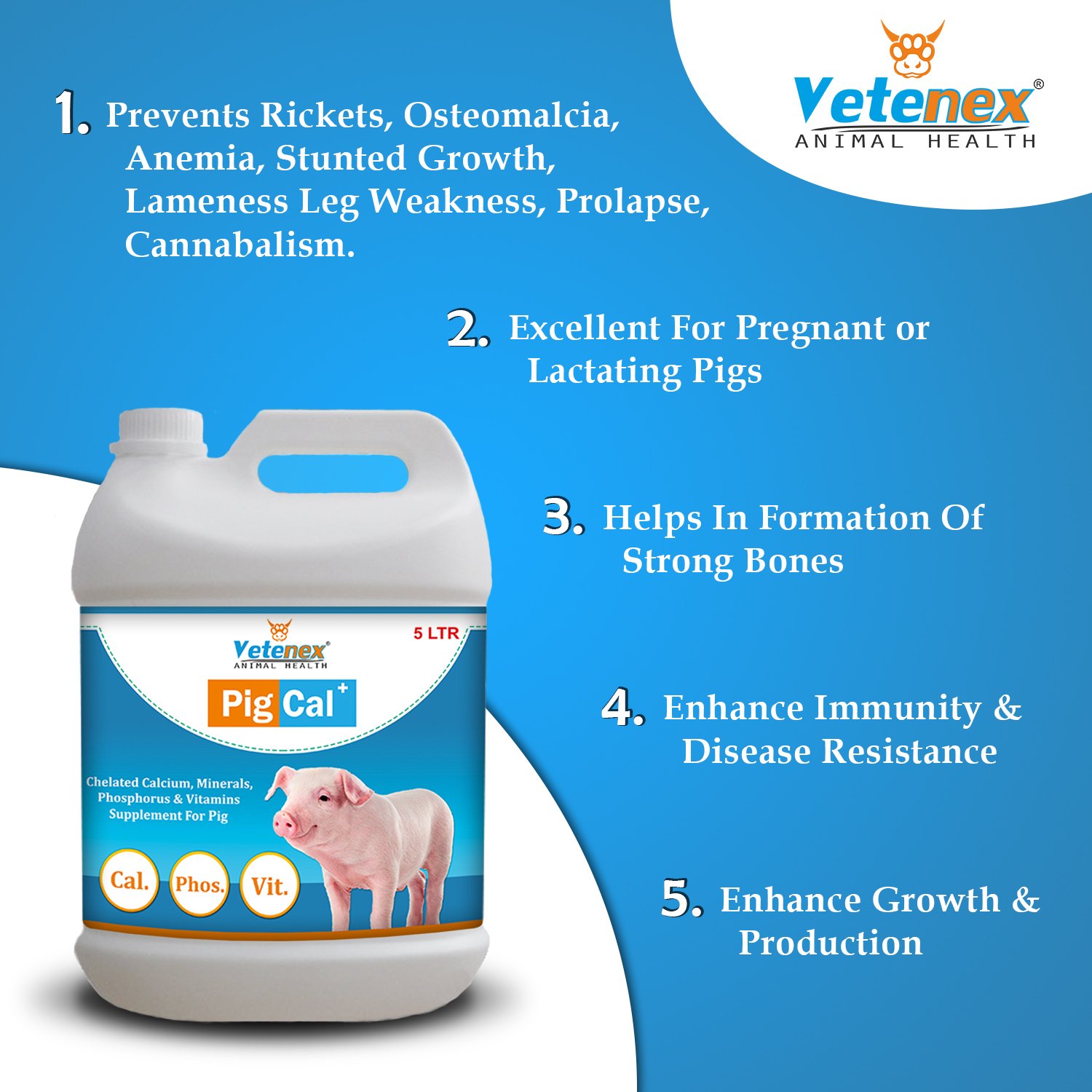 Original price was: ₹399.00.₹349.00Current price is: ₹349.00.VETENEX Pig Cal Plus – Calcium Supplement for Pig, Swine, Piglets & Piggery – 5 LTR