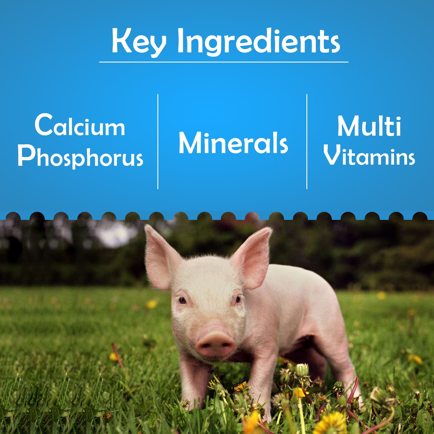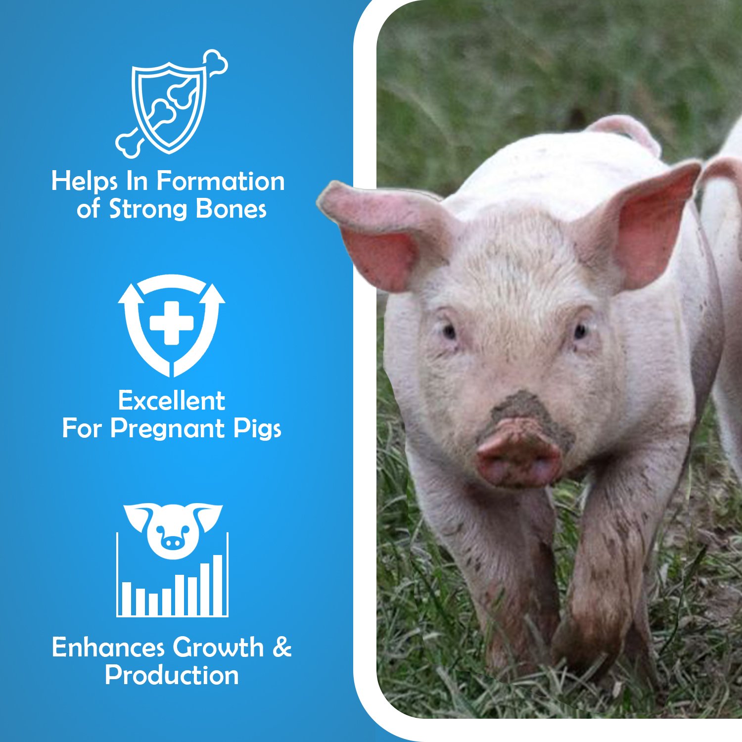PigCal Plus is formulated with high levels of calcium carbonate or other calcium sources that are easily absorbed by pigs.