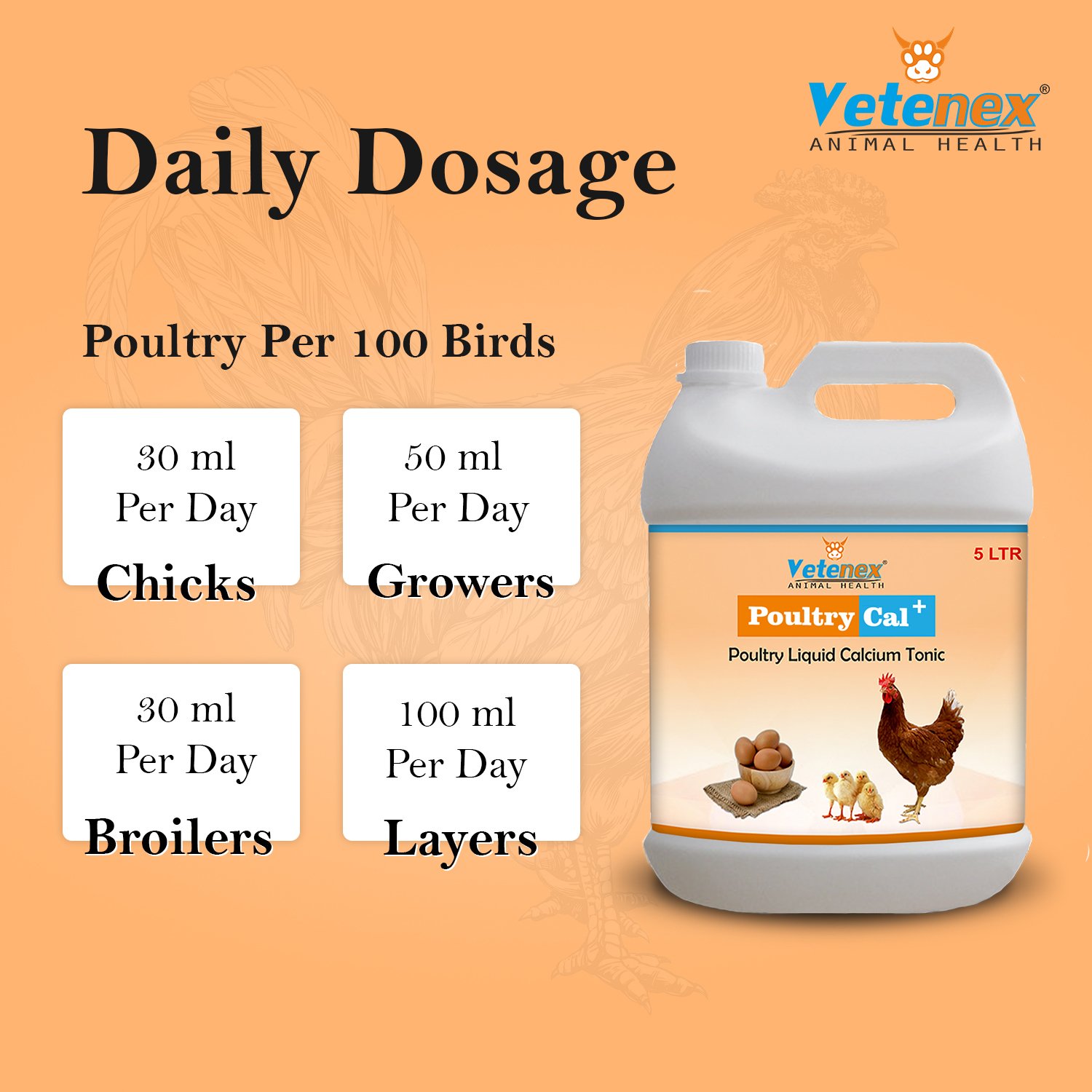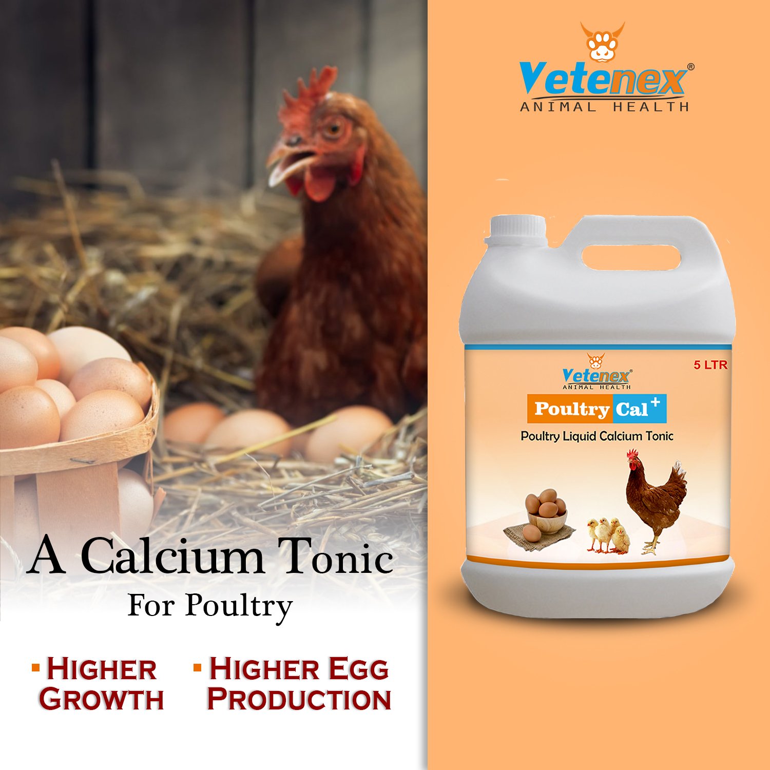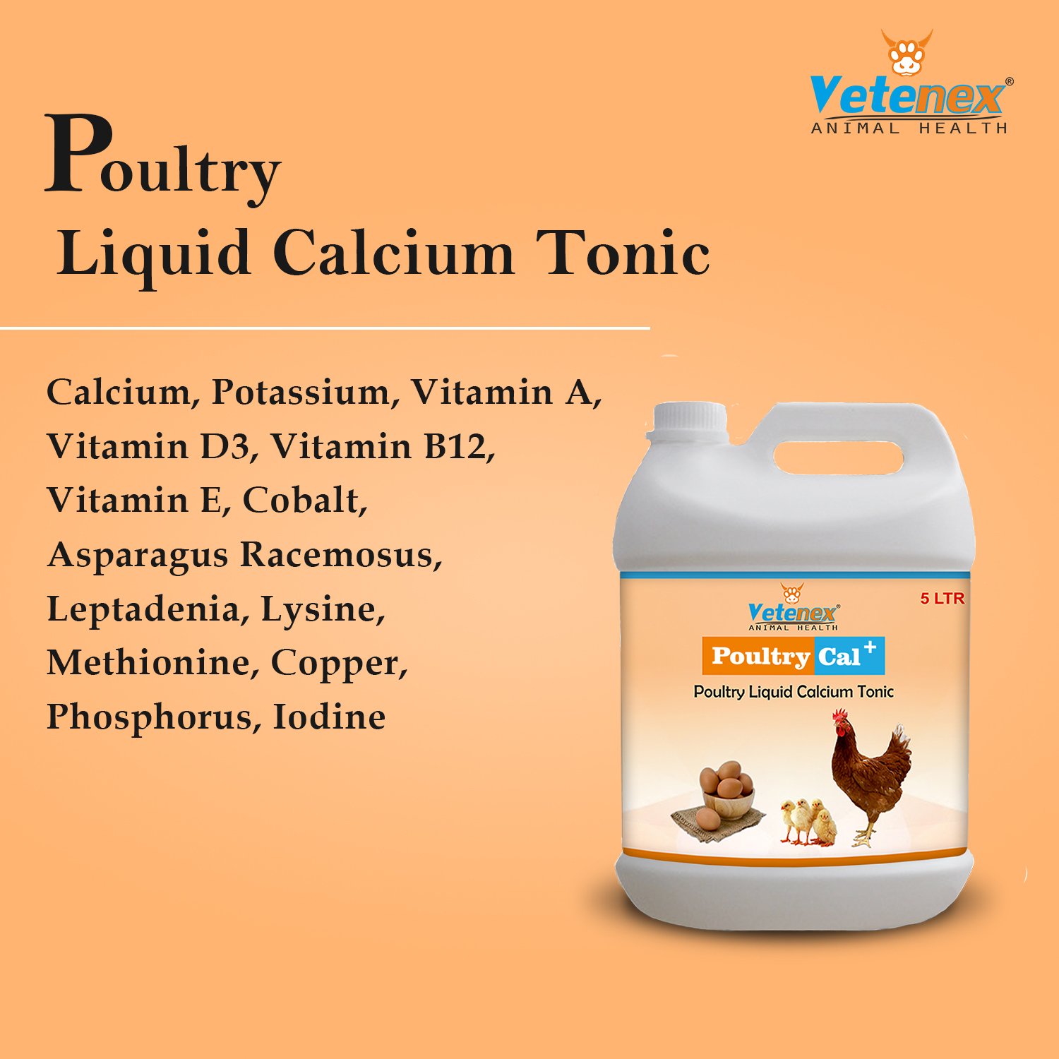 VETENEX Poultry Cal Plus – Calcium Tonic for Poultry, Birds & Chicken – (5 LTRX2)