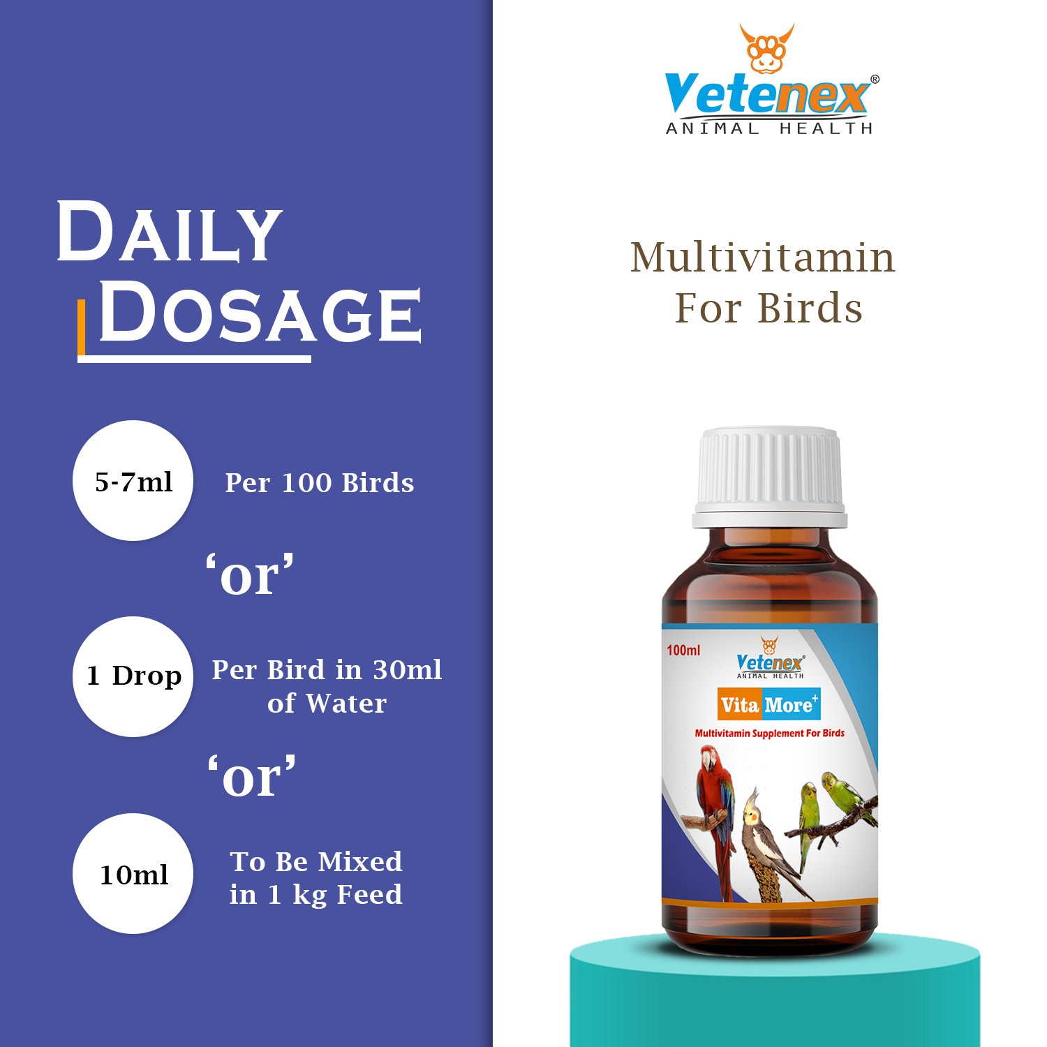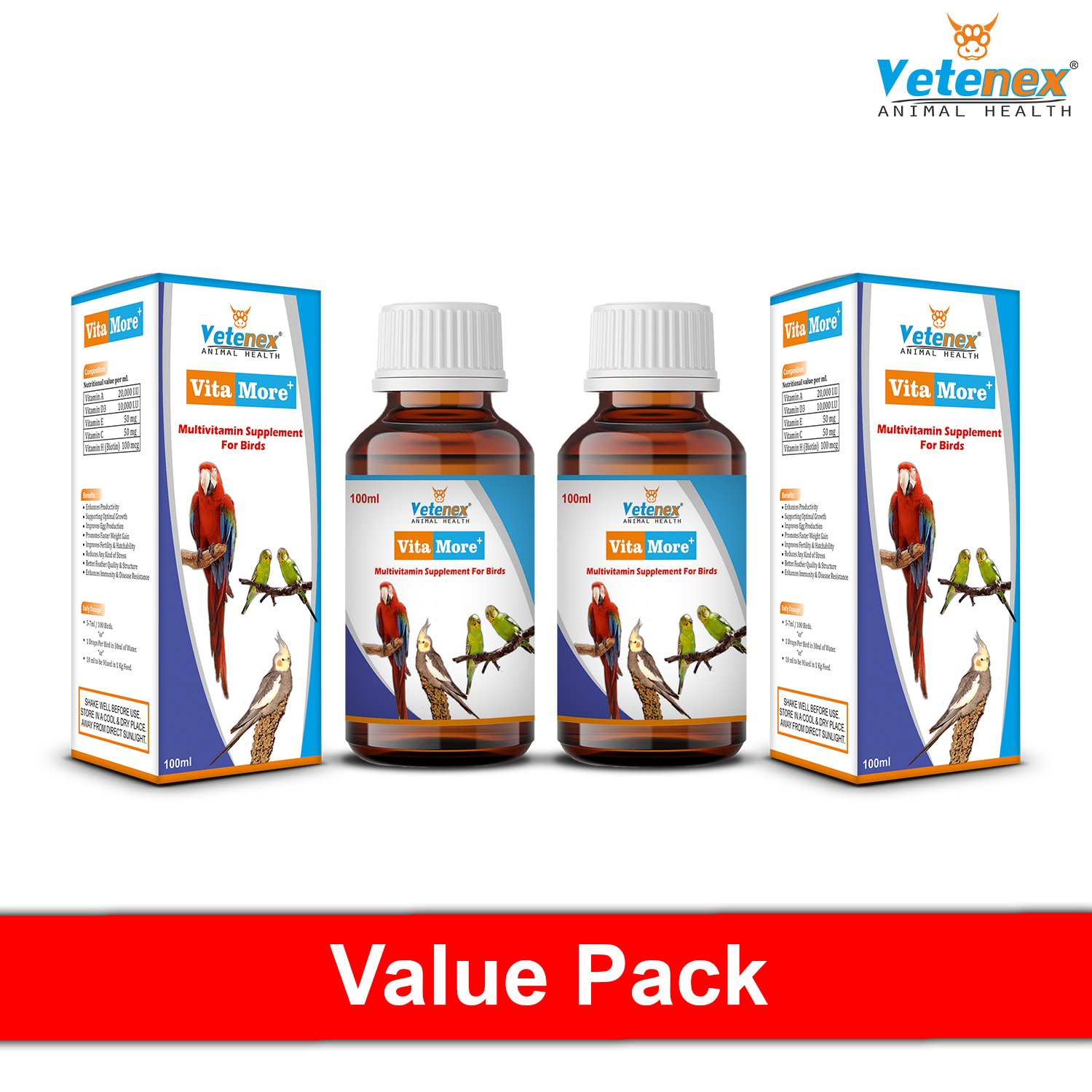 VETENEX VitaMore Plus – Multivitamin Supplement For Birds (100 ml x 2) Combo – Pack of 2